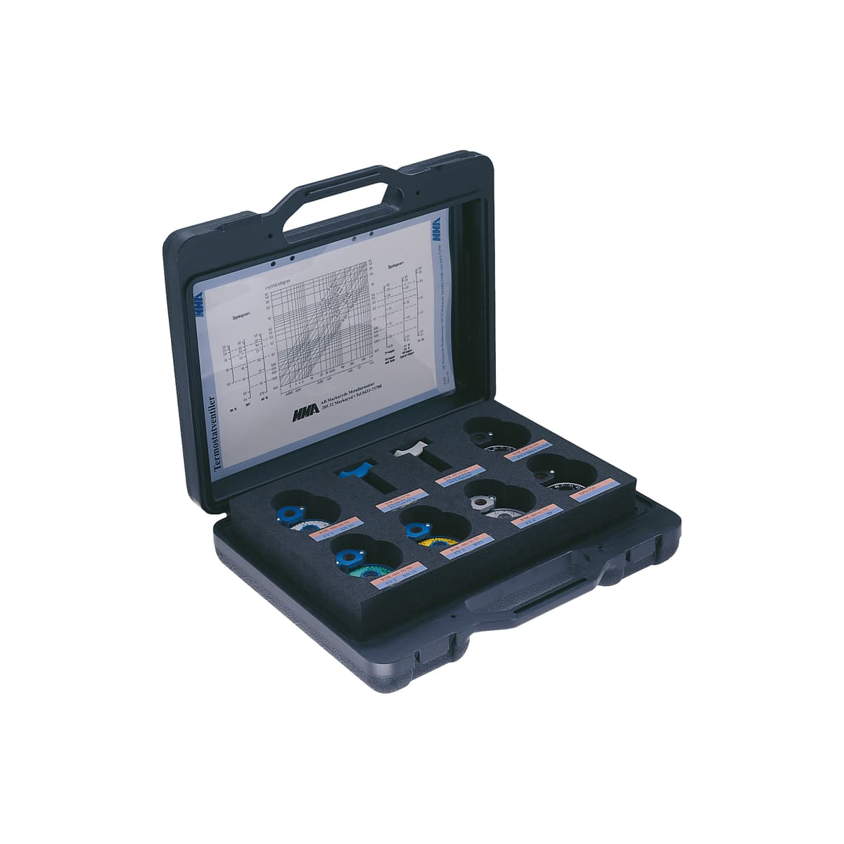Förinställningsverktygen finns i olika varianter beroende på vilken ventil den passar till. Förinställningslåda. Innehåller FV1, FV3, FV4, FV5, FV21, FV22, FN och FN2
