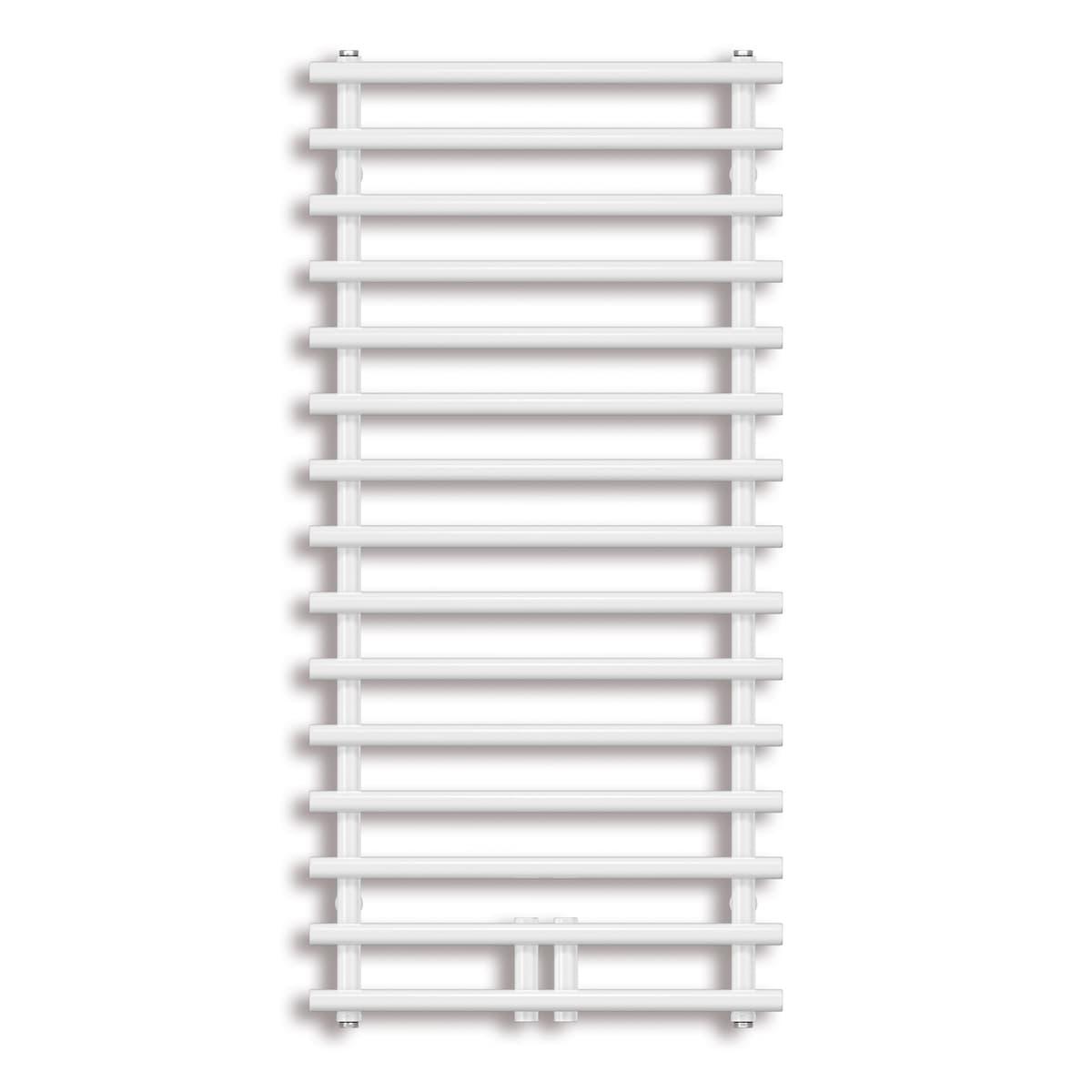 Leros-radiatorn utmärker sig med sin moderna tolkning av en traditionell produktdesign. Dess djärva design accentueras av enkla linjer, med 28 mm breda sidorör som ger den ett solitt utseende. Detta designelement förbättrar inte bara dess robusthet utan ger också gott om utrymme för att torka handdukar. Finns i standard RAL 9016 vitt, andra RAL-färger på begäran, vilket säkerställer att den passar bra i alla badrumsinredningar. Förutom sin primära funktion ger den också ett snyggt och exklusivt utseende till utrymmet den pryder.